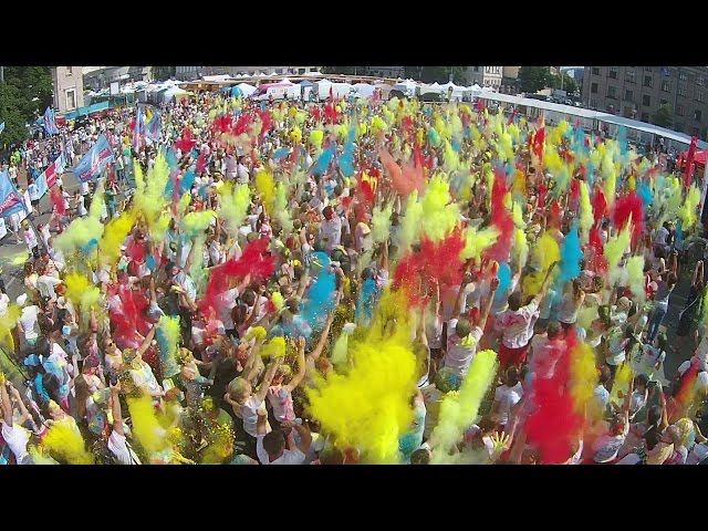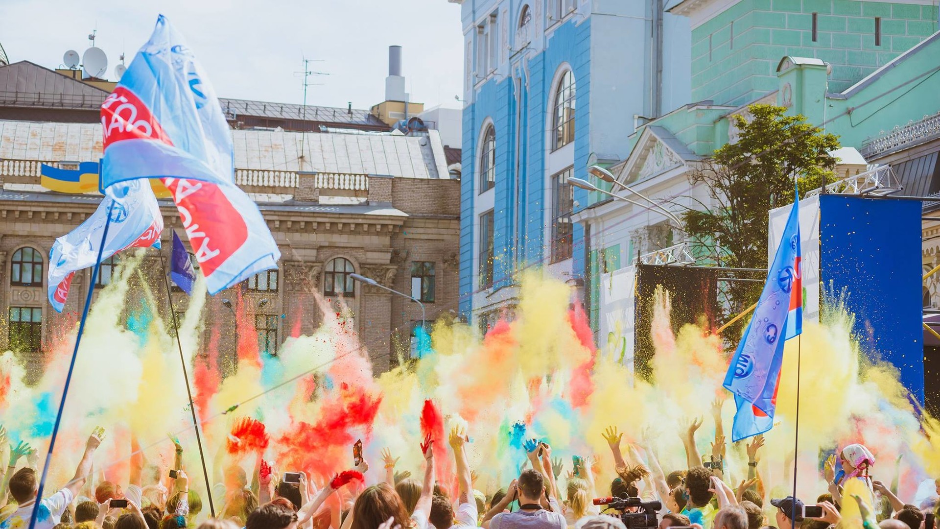 В 10:00 5 июня на Контрактовой площади в Киеве стартовал "Цветной забег" (Color Run). На сайте мероприятия зарегистрировались более 1500 спортсменов.