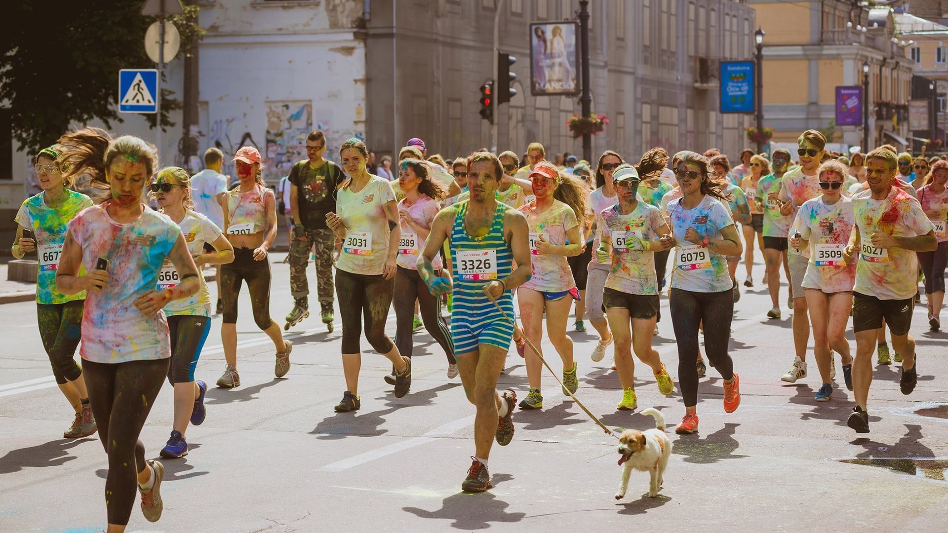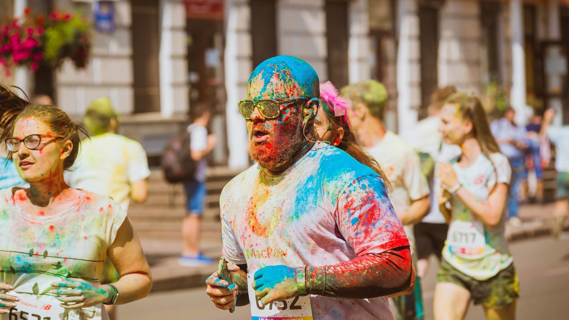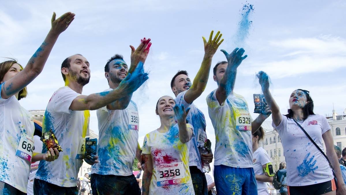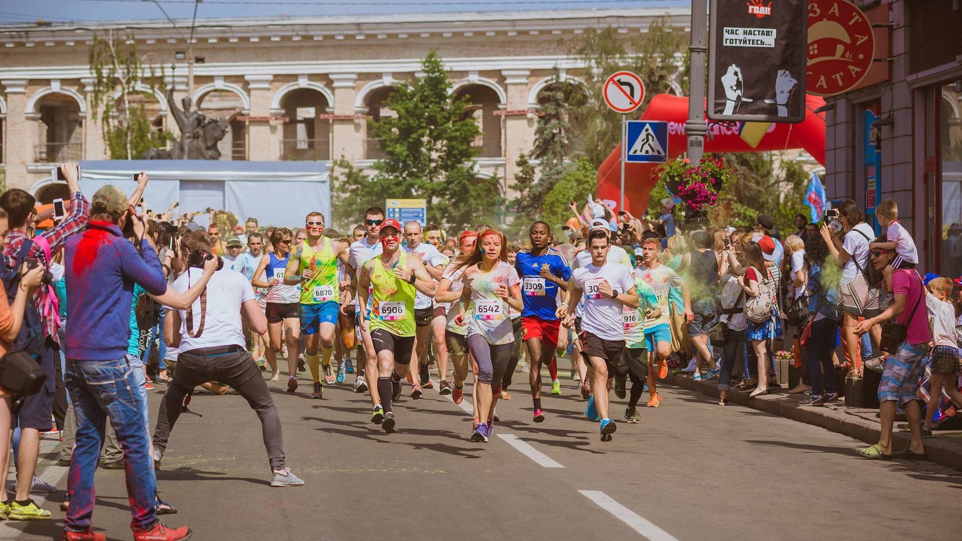 Участники обсыпали друг друга цветными индийскими красками, многие спортсмены пришли на старт в смешных нарядах. В забеге участвовал боксеры Александр Усик и Вячеслав Узелков.