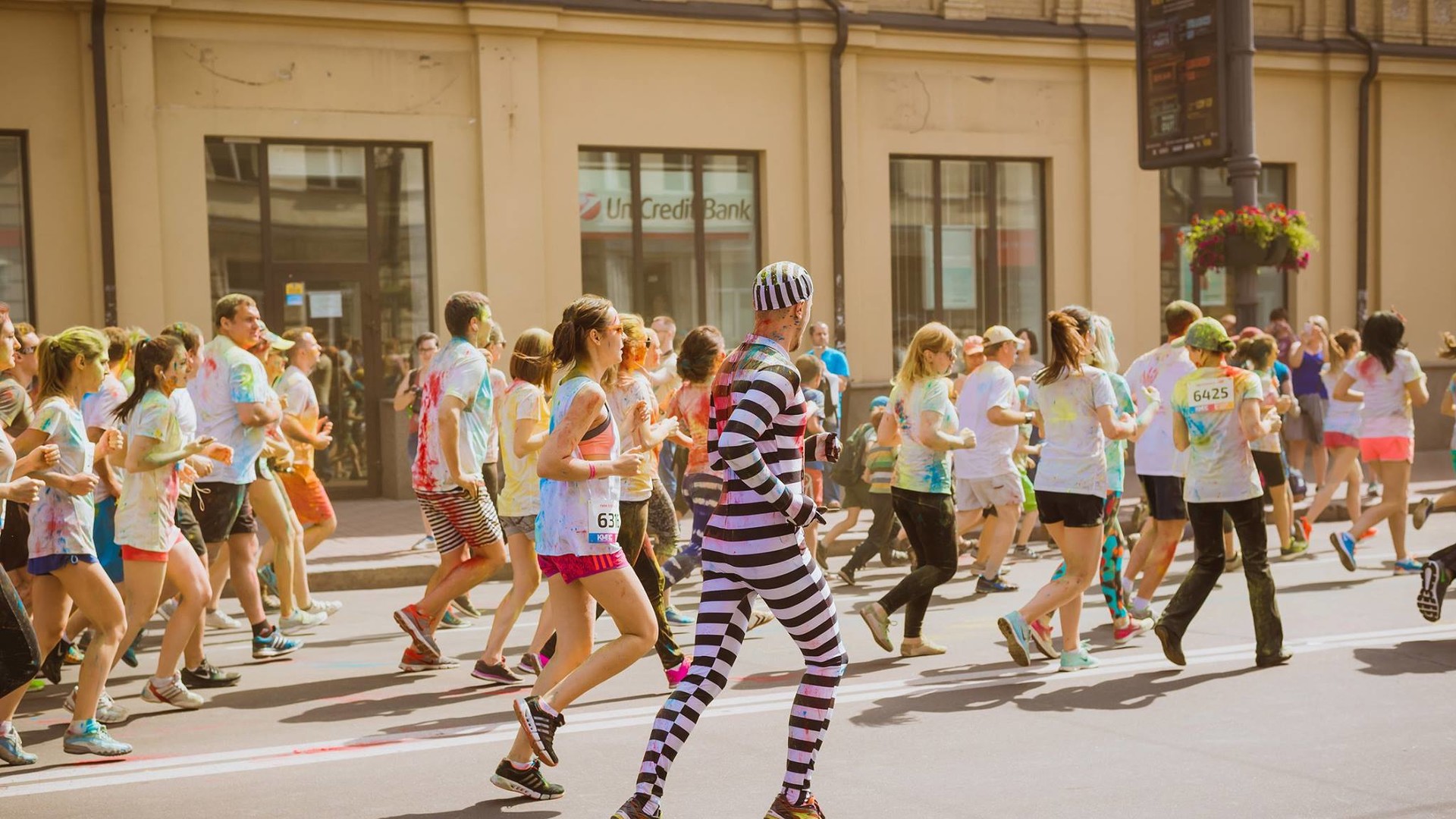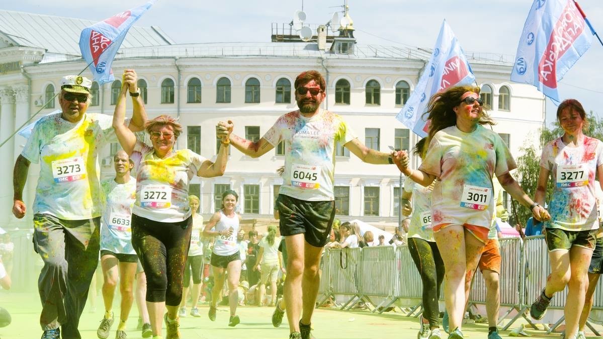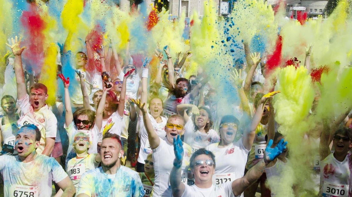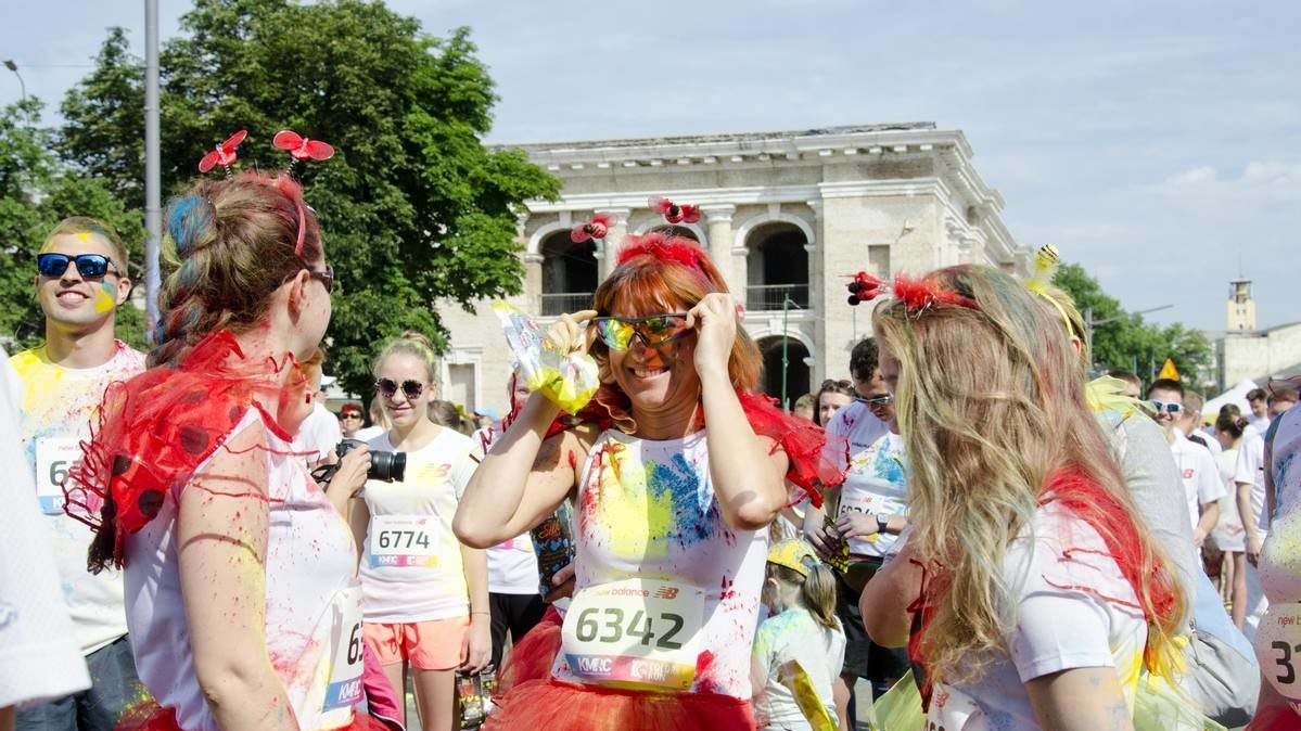 Участники обсыпали друг друга цветными индийскими красками, многие спортсмены пришли на старт в смешных нарядах. В забеге участвовал боксеры Александр Усик и Вячеслав Узелков.