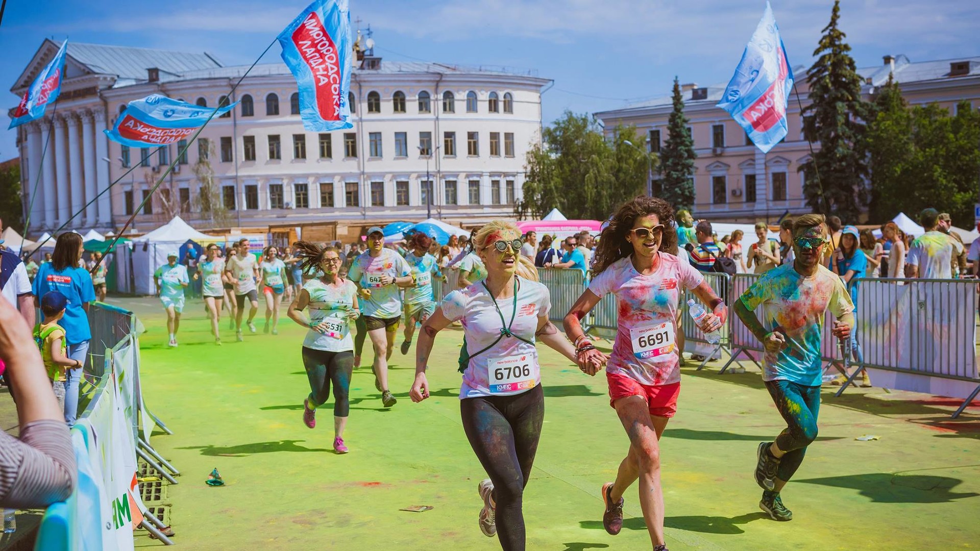 Фотографы делятся снимками с "Цветного забега" на странице мероприятия в Фейсбуке.