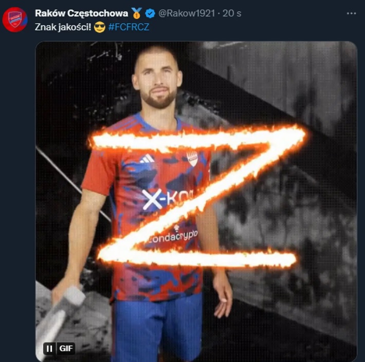 После гола Twitter "Ракува" опубликовал анимацию буквы Z – первой буквы фамилии игрока на польском языке, а сам пост был подписан: "Знак качества".