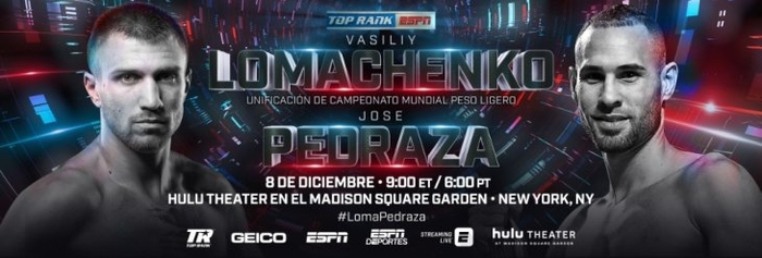 Сегодня, 26 сентября, был выпущен официальный постер объединительного боя украинского чемпиона по версии WBA Василий Ломаченко (11-1, 9 КО) против чемпиона мира по версии WBO пуэрториканца Хосе Педрасы (25-1, 12 КО).