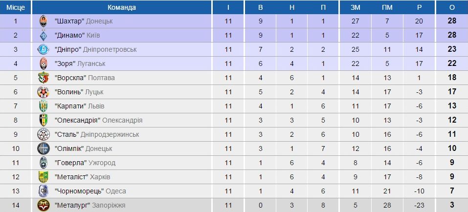 После одиннадцатого тура украинской Премьер-лиги в чемпионате сменился лидер - турнирную таблицу возглавил "Шахтер".