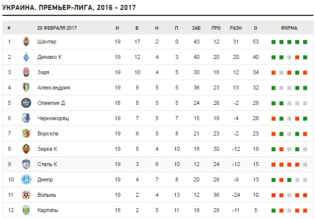 Завершились матчи 19-го тура украинской Премьер-лиги. Тур начался 25-го февраля, а завершился сегодня, 26-го февраля.
