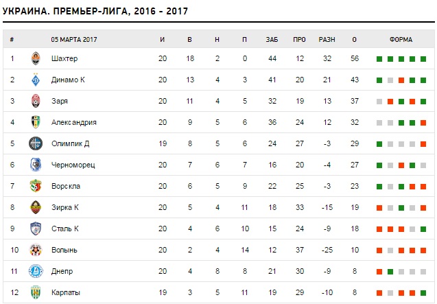 Завершились матчи 20-го тура украинской Премьер-лиги. Тур начался 4 марта, а завершился сегодня, 5 марта.