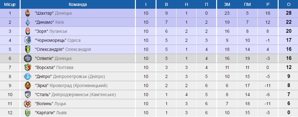 1 и 2 октября состоялись шесть матчей десятого тура украинской Премьер-лиги, по итогам которых в первой тройке произошло одно изменение.