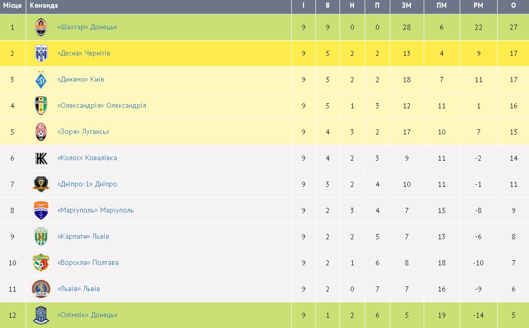 "Шахтер" одержал девятую победу подряд, а "Динамо" и "Десна" продолжают делить вторую строчку в таблице УПЛ.