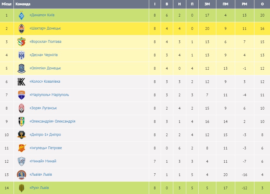 Поединки 8-го тура украинской Премьер-лиги проходили 30, 31 октября и 1 ноября.