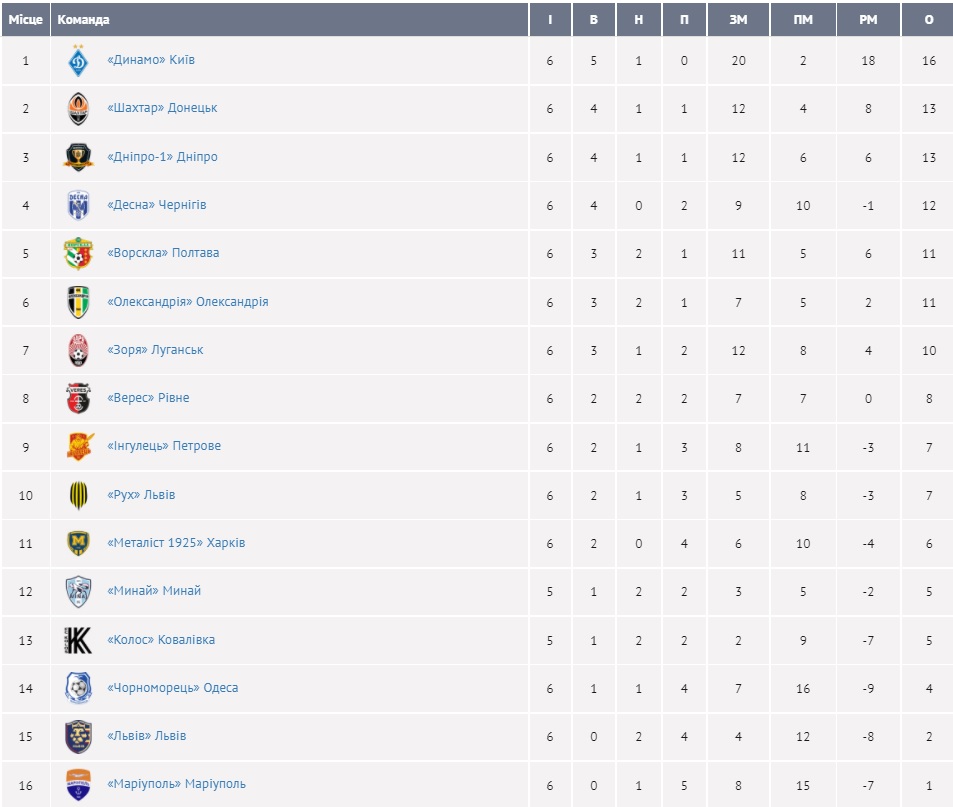 Поединки 6-го тура украинской Премьер-лиги прошли 27, 28 и 29 августа.