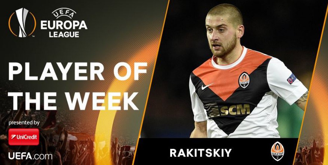 Защитник "Шахтера" Ярослав Ракицкий признан лучшим игроком недели в Лиге Европы. Украинец победил в голосовании на официальном сайте УЕФА.