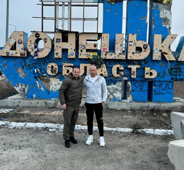 Футболист "Шахтера" Ярослав Ракицкий посетил Донецкую область в компании с бывшим игроком киевского "Динамо" и сборной Украины Александром Алиевым.