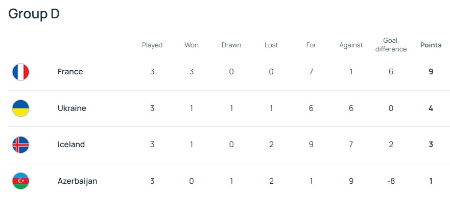 Таким образом, Украина набрала четыре очка и обошла Исландию в турнирной таблице группы, расположившись на второй строчке.