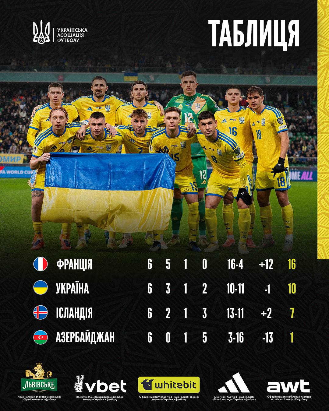 Таким образом, Украина заняла второе место в группе и сыграет в плей-офф квалификации на ЧМ-2026.