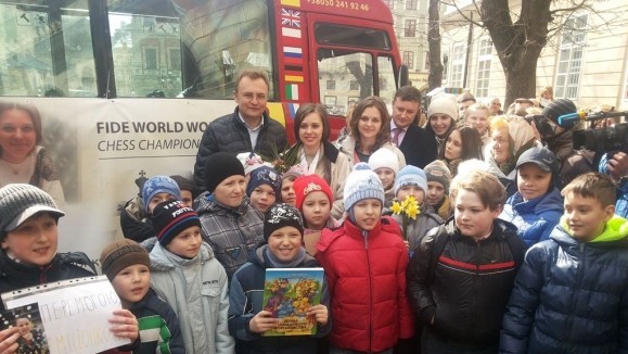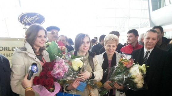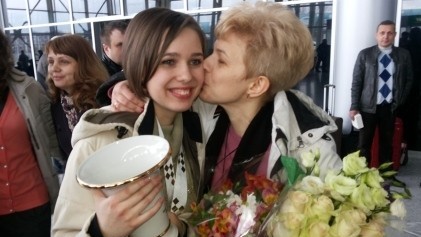 В львовском аэропорту новоиспеченную шахматную королеву встречали с почестями.