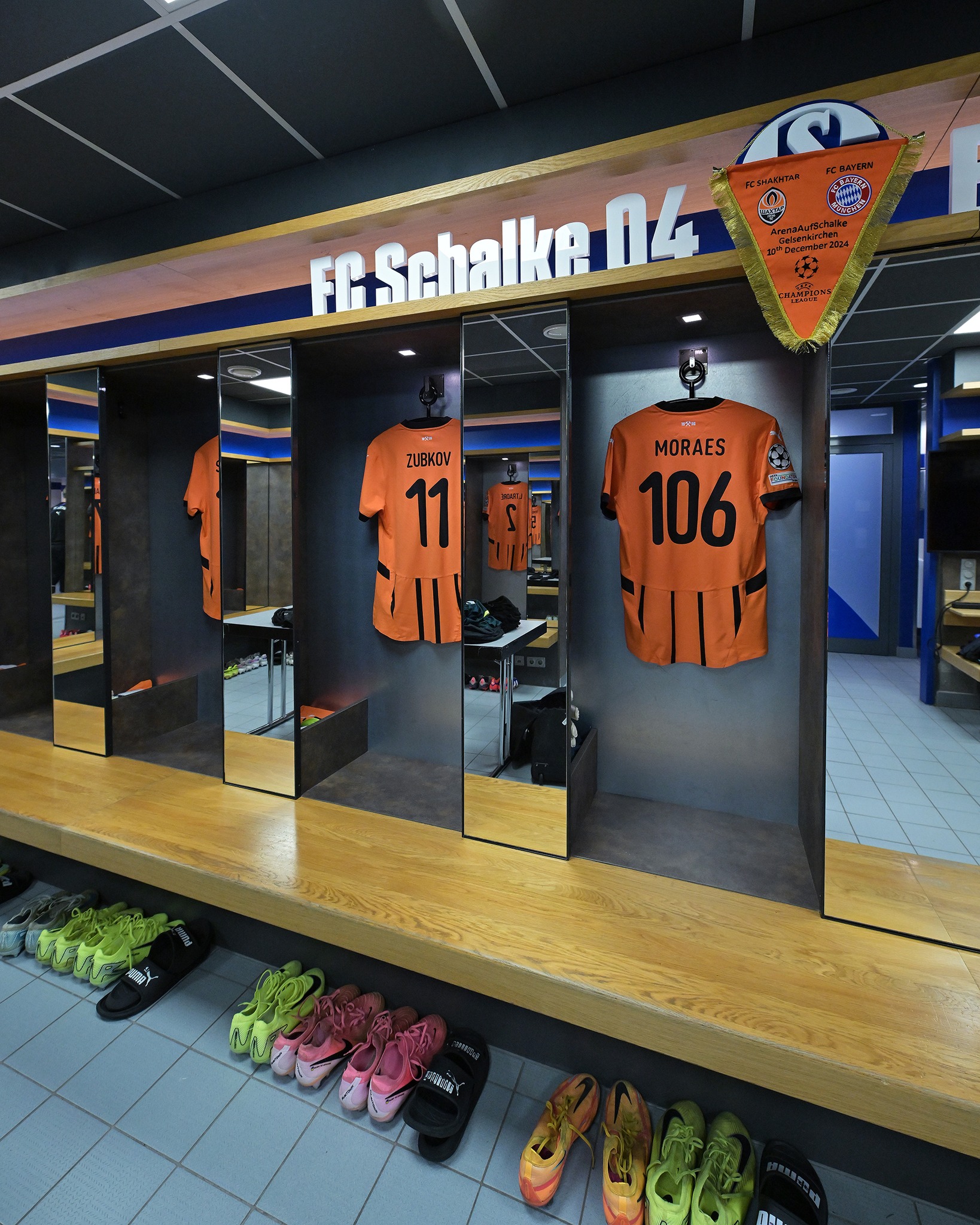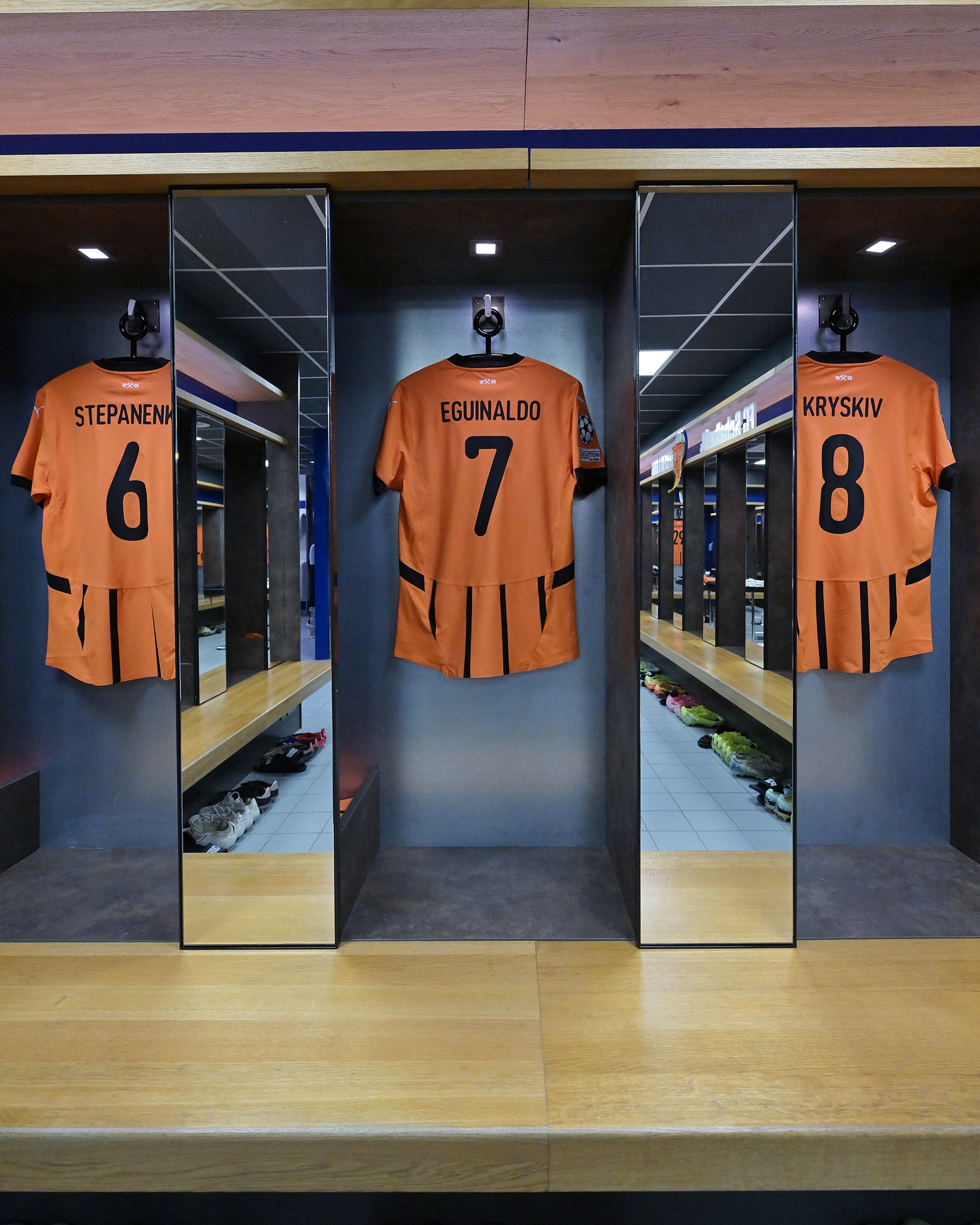 Раздевалка "Шахтера" с символической футболкой Жуниора Мораеса.