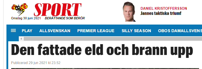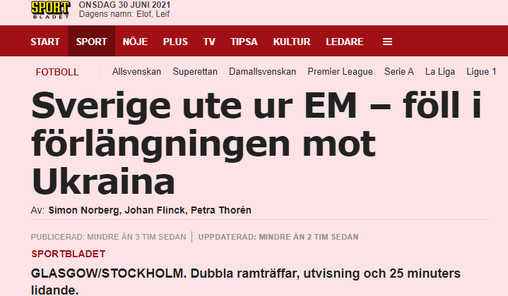"Швеция выбывает из чемпионата Европы после драматичного овертайма", - с таким заголовком вышел отчёт на сайте "Dagens Nyheter".
