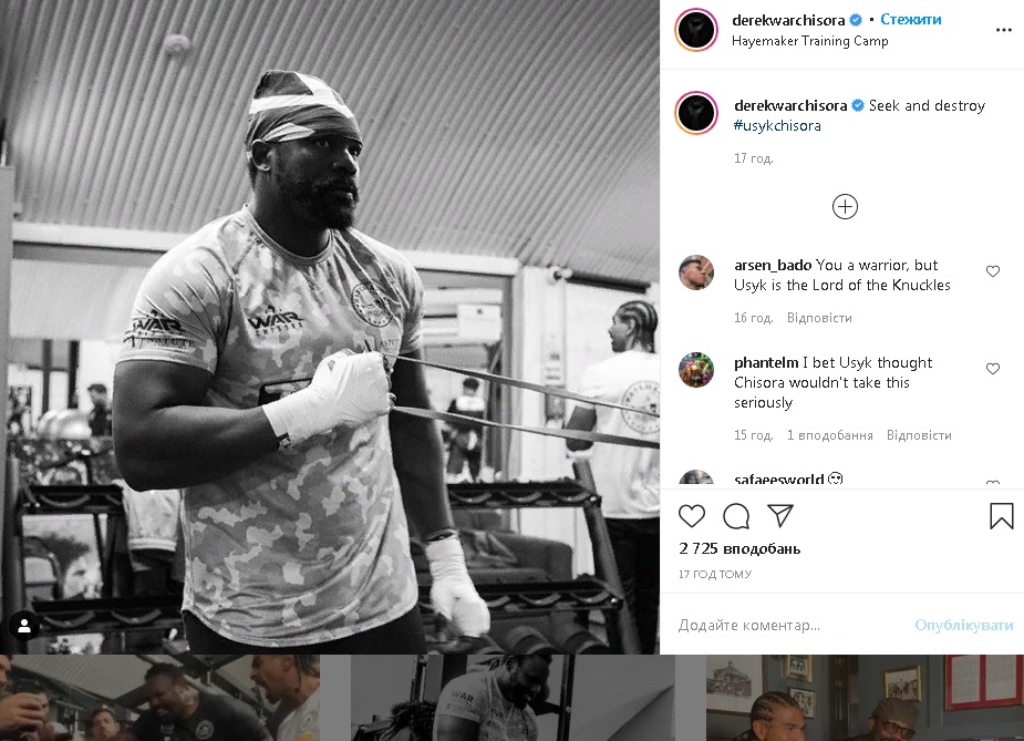 "Найти и уничтожить", — написал Чисора, комментируя свое фото с тренировки в Instagram.