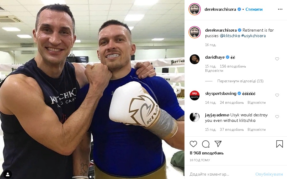 "Выход на пенсию для кисок", – написал Чисора на своей странице в Instagram.