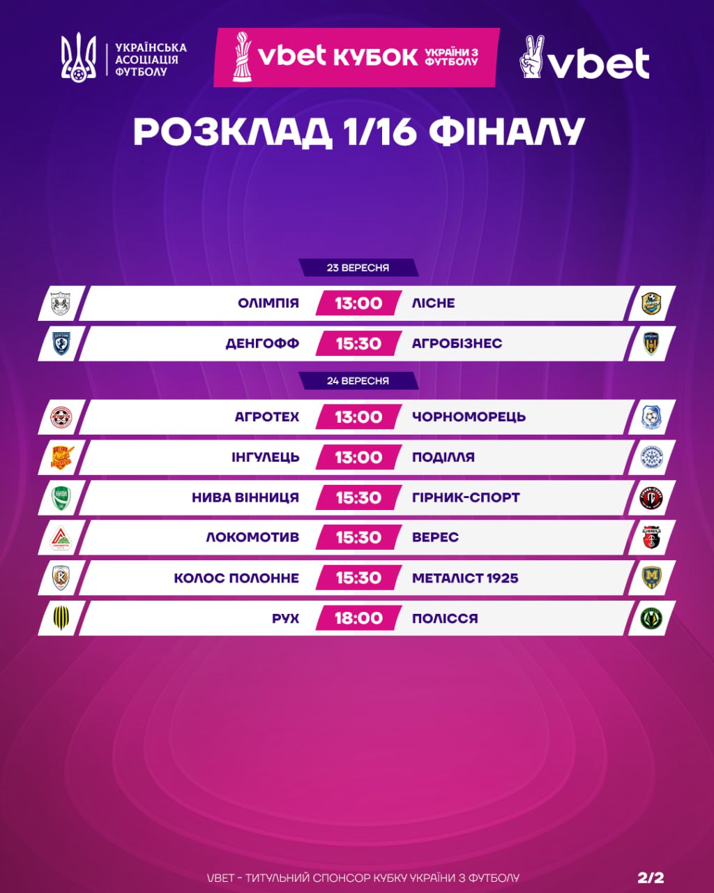 Отметим, что нынешний розыгрыш Кубка Украины проходит в обновленном формате с рекордным количеством участников — 68 команд. Также был введен слепой жребий и отменено дополнительное время.