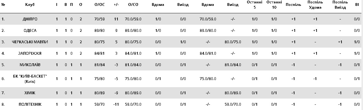В Украине начался очередной чемпионат по баскетболу, в котором принимают участие восемь команд. Матчи стартового тура прошли 5, 6 и 7 октября.