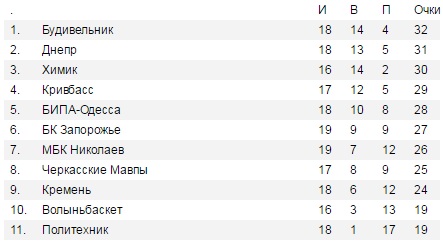 У киевского "Будивельника" было преимущество над "Химиком" в борьбе за лидерство, которое в итоге удалось сохранить. Обе команды одержали победы - "Будивельник" справился с "Волыньбаскетом", а "Химик" обыграл "БИПу". При этом южненцы уступили вторую строчку "Днепру", который провел сразу два поединка и оба раза побеждал "Запорожье" - дома и на выезде.