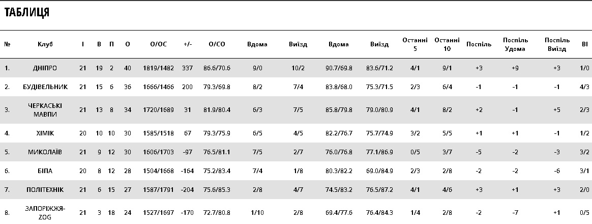 После сыгранных матчей "Днепр" остался лидером в турнирной таблице баскетбольной Суперлиги, опережая "Будивельник" на четыре очка.