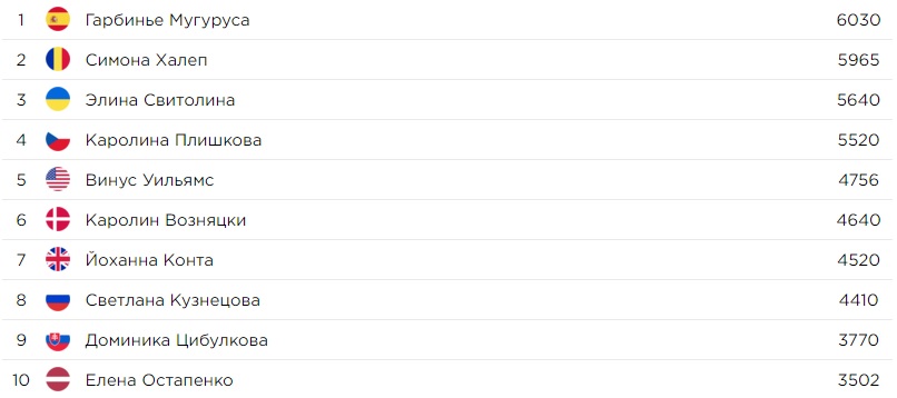 Первой ракеткой мира стала испанка Гарбинье Мугуруса, а вторую строчку занимает румынка Симона Халеп.