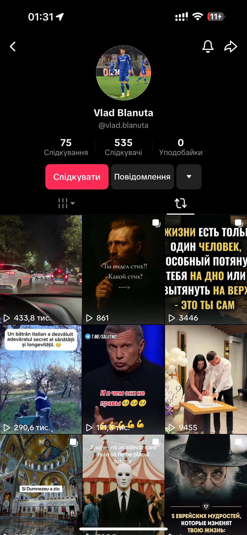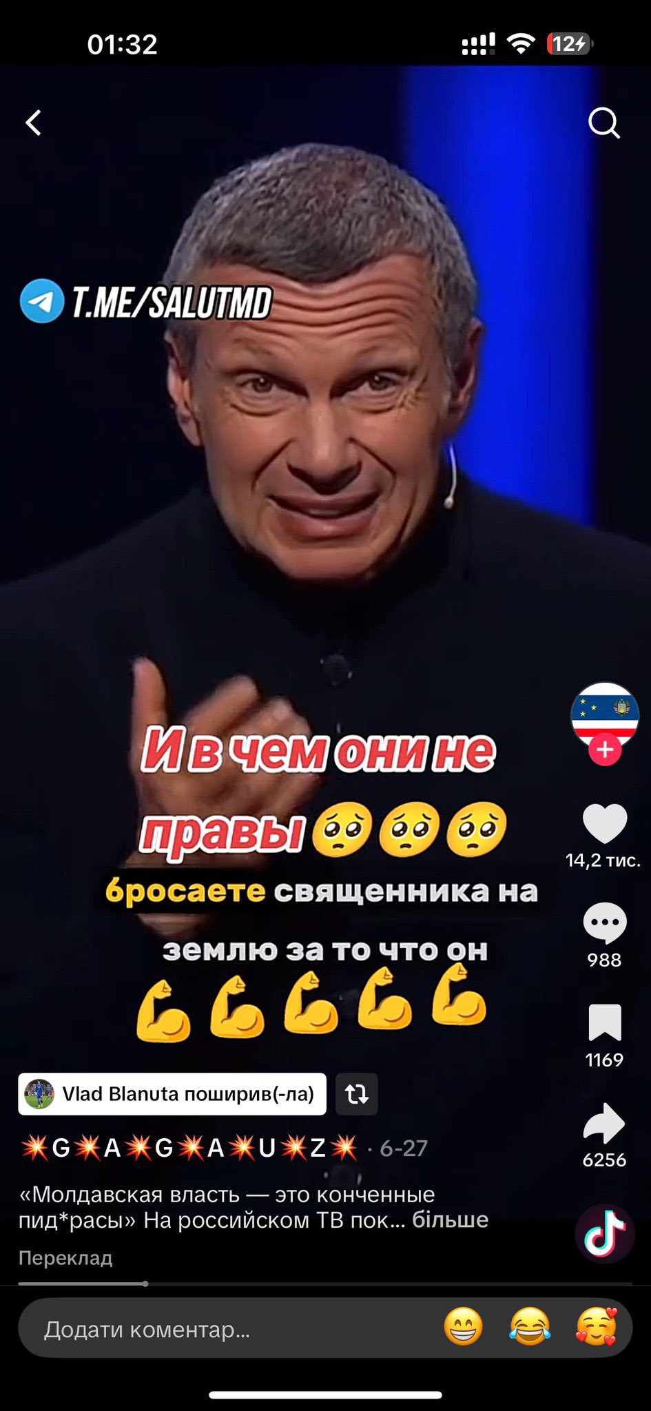 По скриншотам источника видно, что Блэнуцэ не скрывает своего положительного отношения к России, а в его TikTok-аккаунте можно найти видео главного российского пропагандиста Соловьева и музыку из криминального российского фильма "Бригада".
