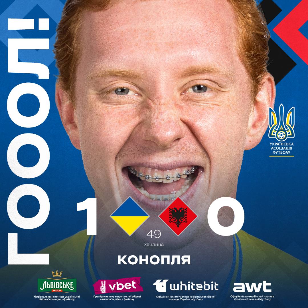 51. Гол! Конопля приложился в ближний угол из-за пределов штрафной и пробил кипера Албании