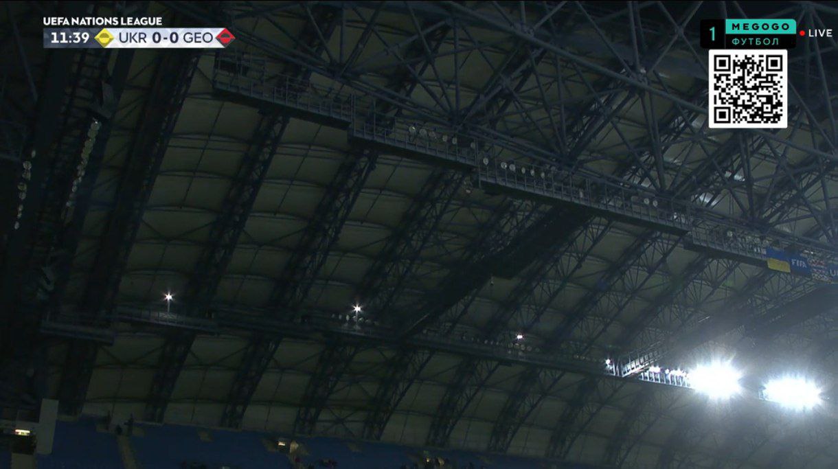Пауза в игре. Проблемы со светом на стадионе.