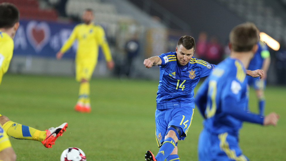 Сборная Украины в Польше провела третий матч группового этапа квалификации на чемпионат мира 2018 года. "Желто-синие" принимали Косово на стадионе "Краковия" в присутствии 1000 зрителей и одержали победу со счетом 3:0.