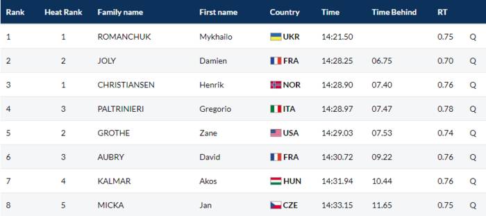 Украинец преодолел дистанцию за 14:21.50 мин, опередив ближайших преследователей почти на 7 секунд. Финальный заплыв пройдет в воскресенье, 16 декабря.