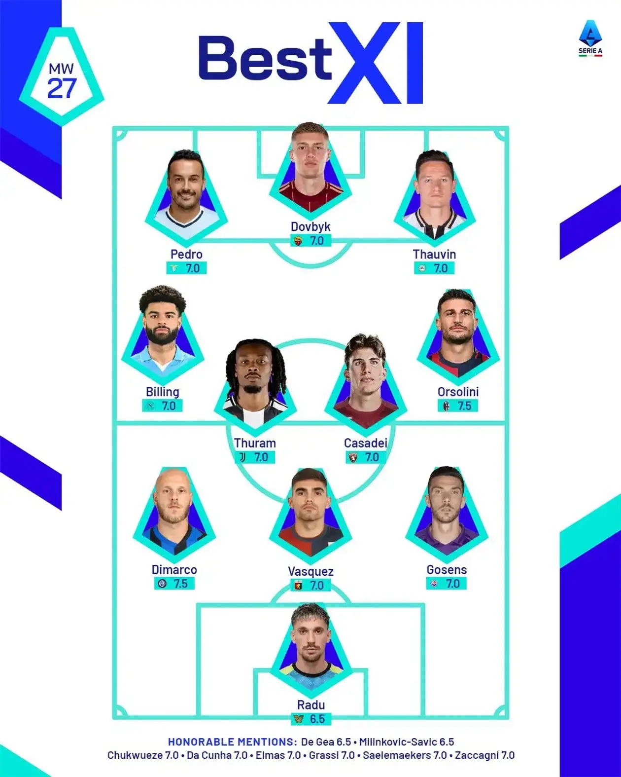 Украинский нападающий "Ромы" Артем Довбик вошел в символическую сборную по итогам 27-го тура чемпионата Италии.