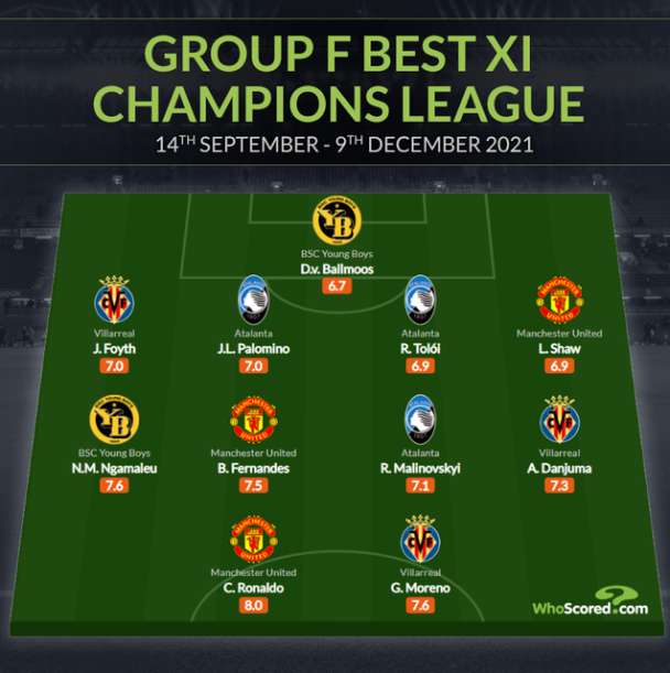 28-летний полузащитник оказался в числе одиннадцати лучших в группе F с "Манчестер Юнайтед", "Вильярреалом" и "Янг Бойз".