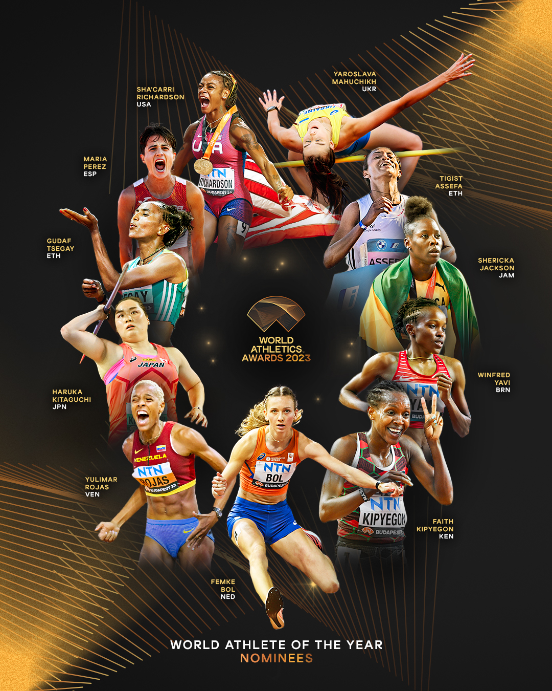 Также на звание лучшей в мире будут претендовать Тигист Ассефу (Эфиопия), Фемке Бол (Нидерланды), Шерика Джексон (Ямайка), Фейт Кипьегон (Кения), Харука Китагути (Япония), Мария Перес (Испания), Гудаф Цегай (Эфиопия), Ша'Карри Ричардсон (США), Юлимар Рохас (Венесуэла) и Винфред Яви (Бахрейн).