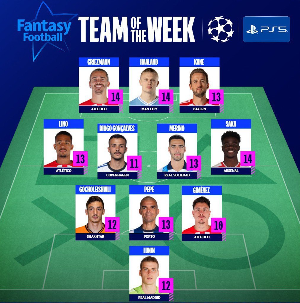 УЕФА опубликовал команду недели по итогам четвертого тура группового этапа Лиги чемпионов.