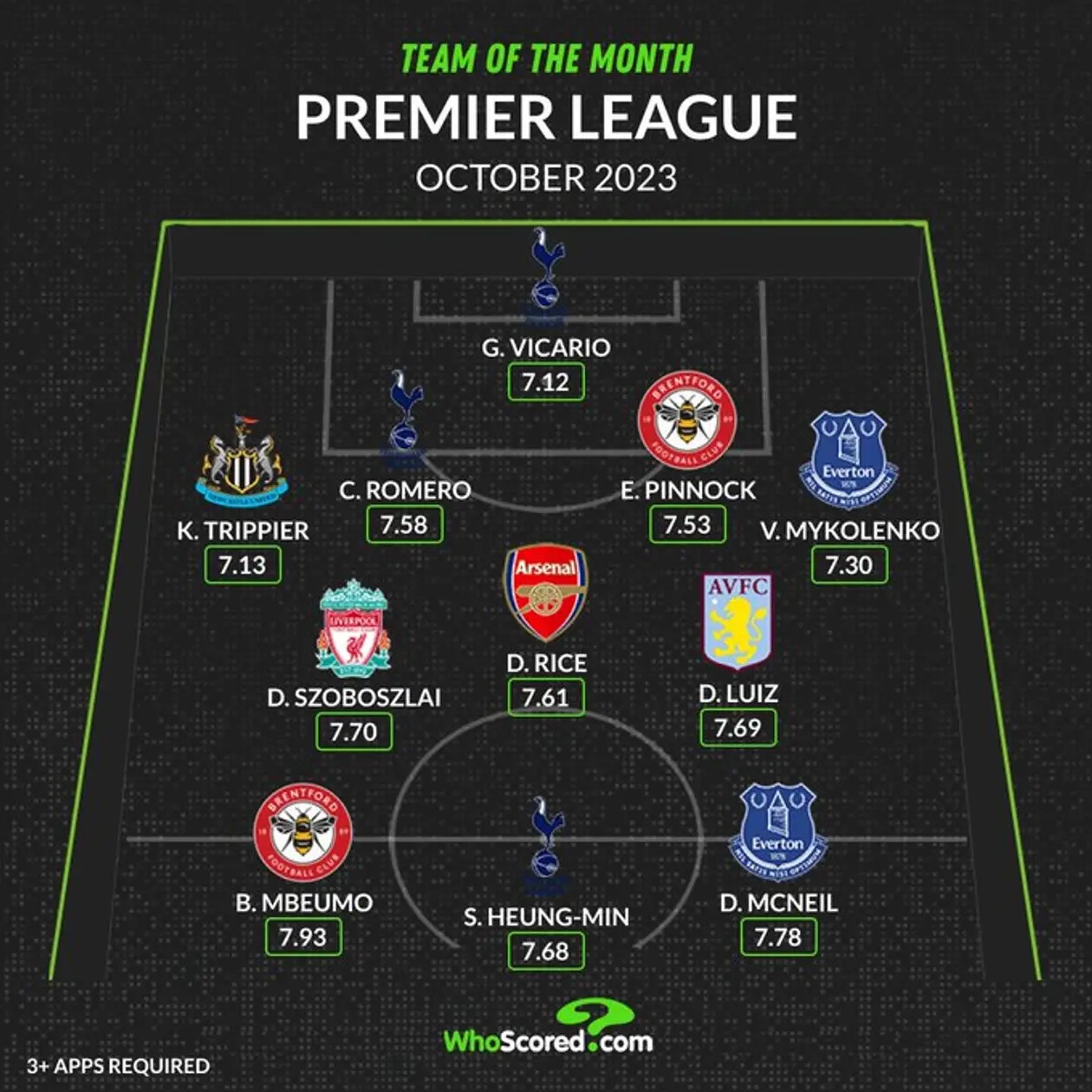 Команду месяца в элитном дивизионе чемпионата Англии представил портал WhoScored.
