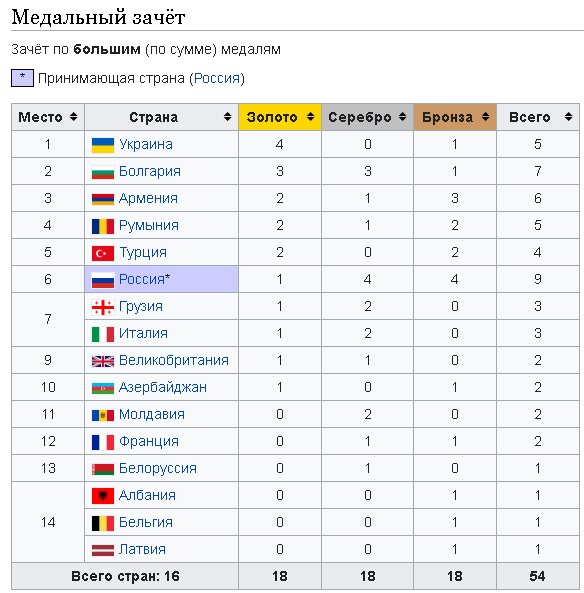 Медальный зачет