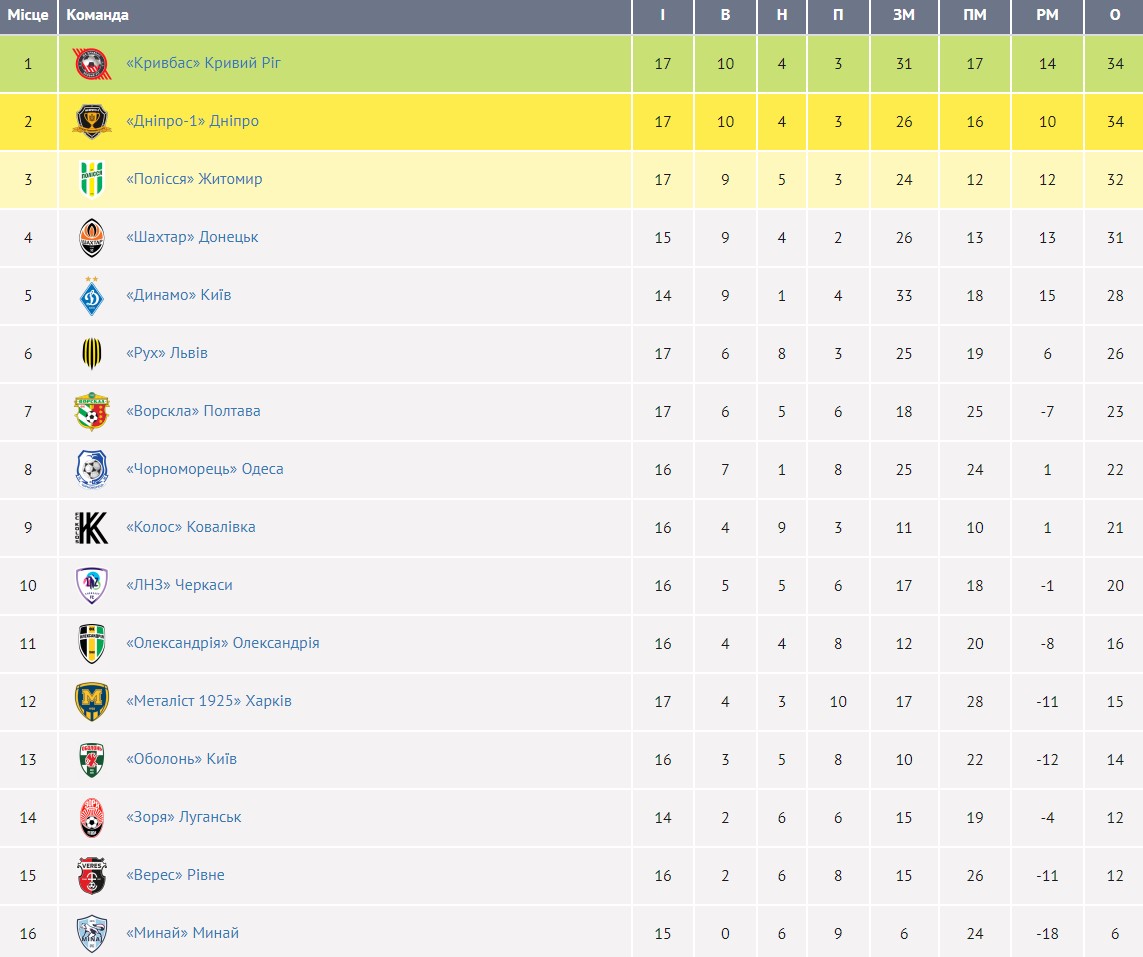 Лидерами бомбардирской гонки по итогам первой половины сезона являются Олег Кожушко ("Кривбасс") и Владислав Ванат ("Динамо"), у которых на счету по семь голов.