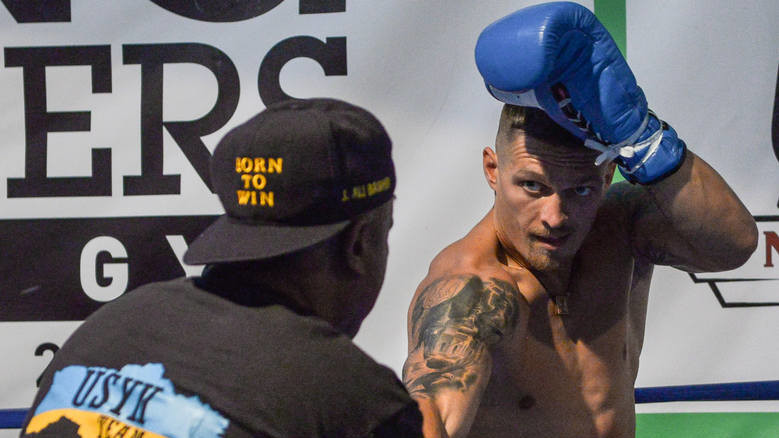 В рамках мероприятия украинец провел серию упражнений, после чего поработал с грушей и вместе со своим тренером - американцем Джеймсом Али Баширом.