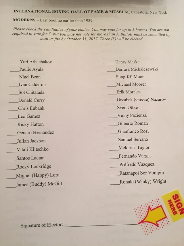 В категории "Современные боксеры" (те, кто провели последний бой не раньше 1989 года) 32 фамилии. Из них путем голосования будет выбрано всего три новых членов Зала славы.
