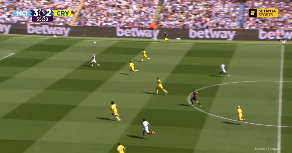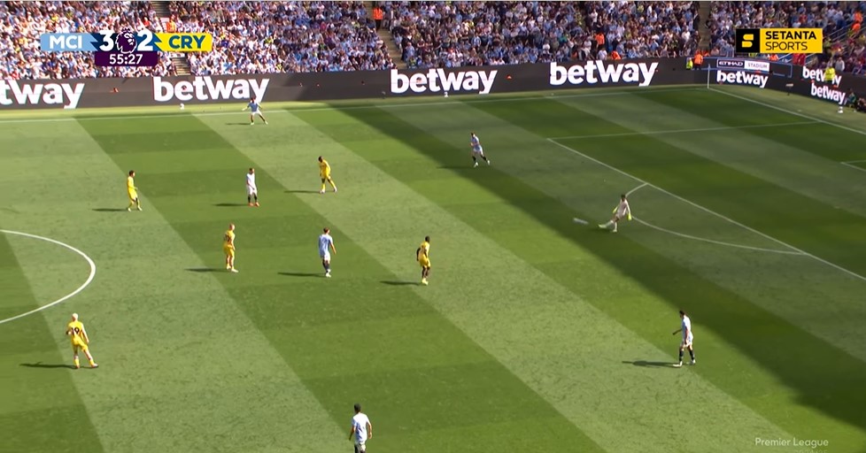 Бразильский вратарь "Манчестер Сити" Эдерсон отдал голевой пас за команду в матче 32-го тура английской Премьер-лиги против "Кристал Пэлас".
