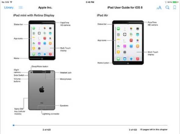 На момент публикации новости Apple удалила слайды из iTunes. Сейчас пользователям доступен гид по использованию iOS 8 и только на примере iPad версий 2013 года.