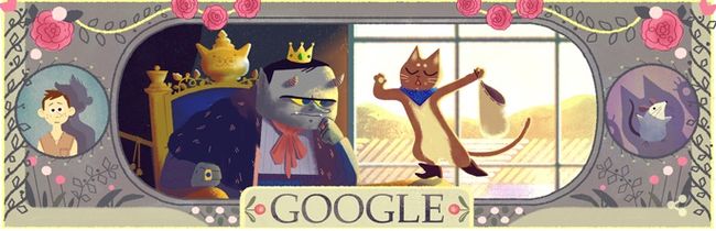 Google презентовал дудл к 388-летию со дня рождения французского сказочника Шарля Перро. На главной странице поисковика появились три иллюстрации к сказкам известного писателя: на "Золушку", "Спящую красавицу" и "Кота в сапогах".