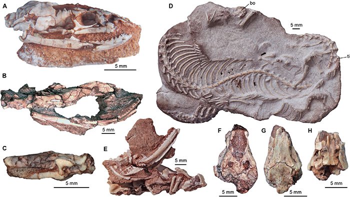 Отмечается, что исследователи обнаружили череп змеи Najash rionegrina. Исследователям и раньше удавалось находить останки змей с "ногами", но они, как правило, обитали в воде, поэтому их останки были сдавлены донными отложениями практически до плоского состояния.