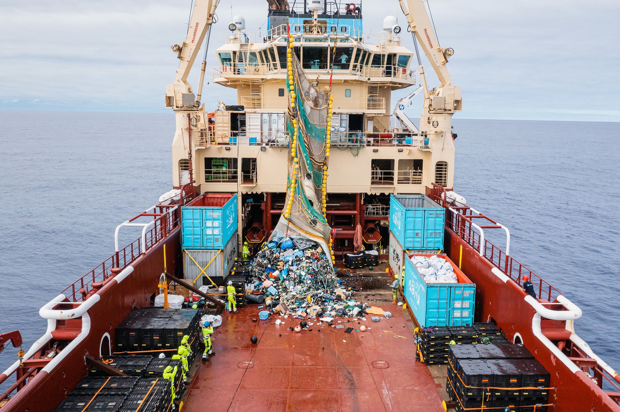 Как только система закрывается и поднимается на борт корабля, ее сеть опорожняется. Затем пластик сортируется и перерабатывается, а часть пластика даже используется для создания солнцезащитных очков, которые помогают финансировать проект «Ocean».
