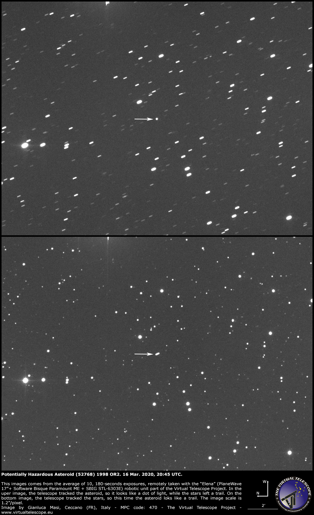 Ученые из проекта Virtual Telescope получили снимки астероида (52768) 1998 OR2, который пролетит мимо Земли 29 апреля. Как сообщает Space.com, NASA относит астероид к классу потенциально опасных. На полученных снимках он заметен как маленькая яркая точка.