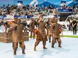 Открытие сопровождалось демонстрационными выступлениями. Во время футбольных матчей роботам приходилось несколько раз повторять попытки забить гол, вратари падали после ударов, а некоторые участники самостоятельно восстанавливались после падений. В показах мод роботы выходили вместе с людьми; одну упавшую модель вынесли со сцены. Дополнительно продемонстрированы танцы и музыкальные выступления.