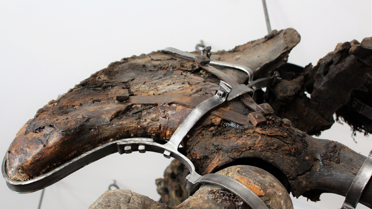 Основные работы, которые были проведены с объектом, – это обеспыливание, ведь ему уже более 100 лет. Скелет был отчищен от наслоений грязи. Кости прошли рентгеновское обследование, чтобы понять, какая часть кости является родной, а какая еще 100 лет назад была доработана с помощью гипса. Также каждую кость пропитали антигрибковым раствором, чтобы исключить возможность порчи. После проведения такой основательной реставрации галицкий мамонт не потребует вмешательства специалистов в течение ближайших ста лет.