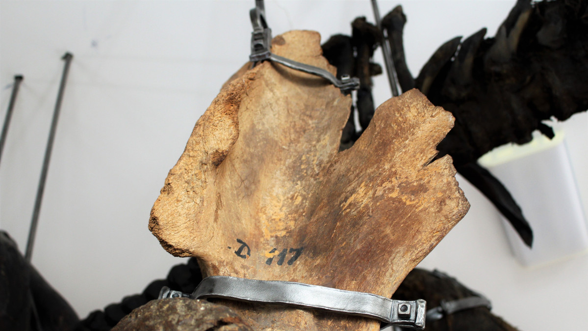 Музейщики также изменили способ экспонирования мамонта. Раньше скелет стоял на семи специальных опорах, что портило восприятие экспоната. Теперь каждая кость охвачена металлическим хомутом и зафиксирована в надлежащем положении. Закреплен он не к полу, как было раньше, а к потолку. В старой экспозиции музея мамонт был размещен в другом месте. Такая позиция была не слишком выгодной для восприятия, ведь скелет стоял на более низком уровне: посетители не имели возможности должным образом оценить размер находки. А это очень большое животное, которое жило на наших просторах более 10 тысяч лет назад.